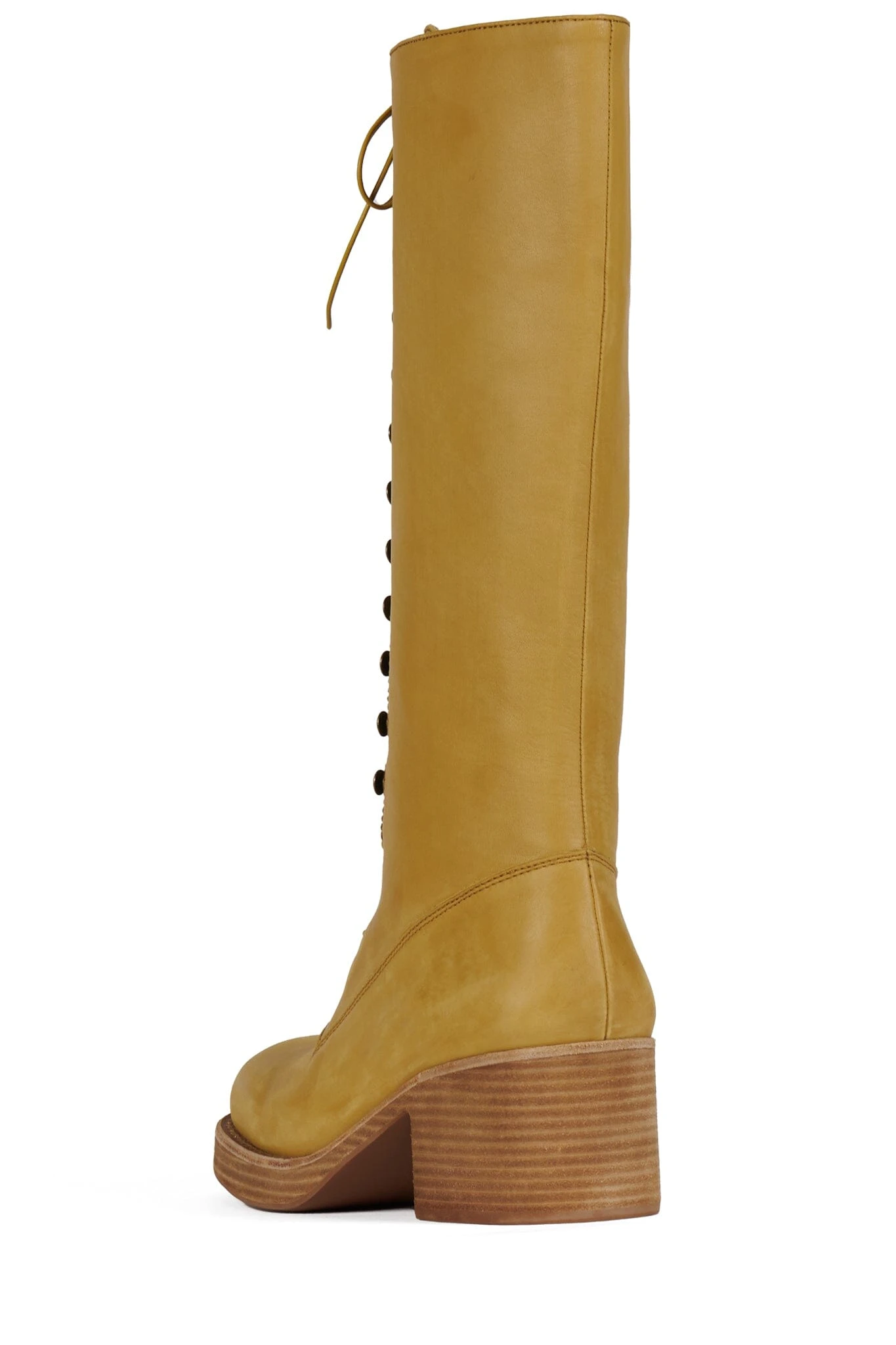 Stacked heel knee-high lace-up boot