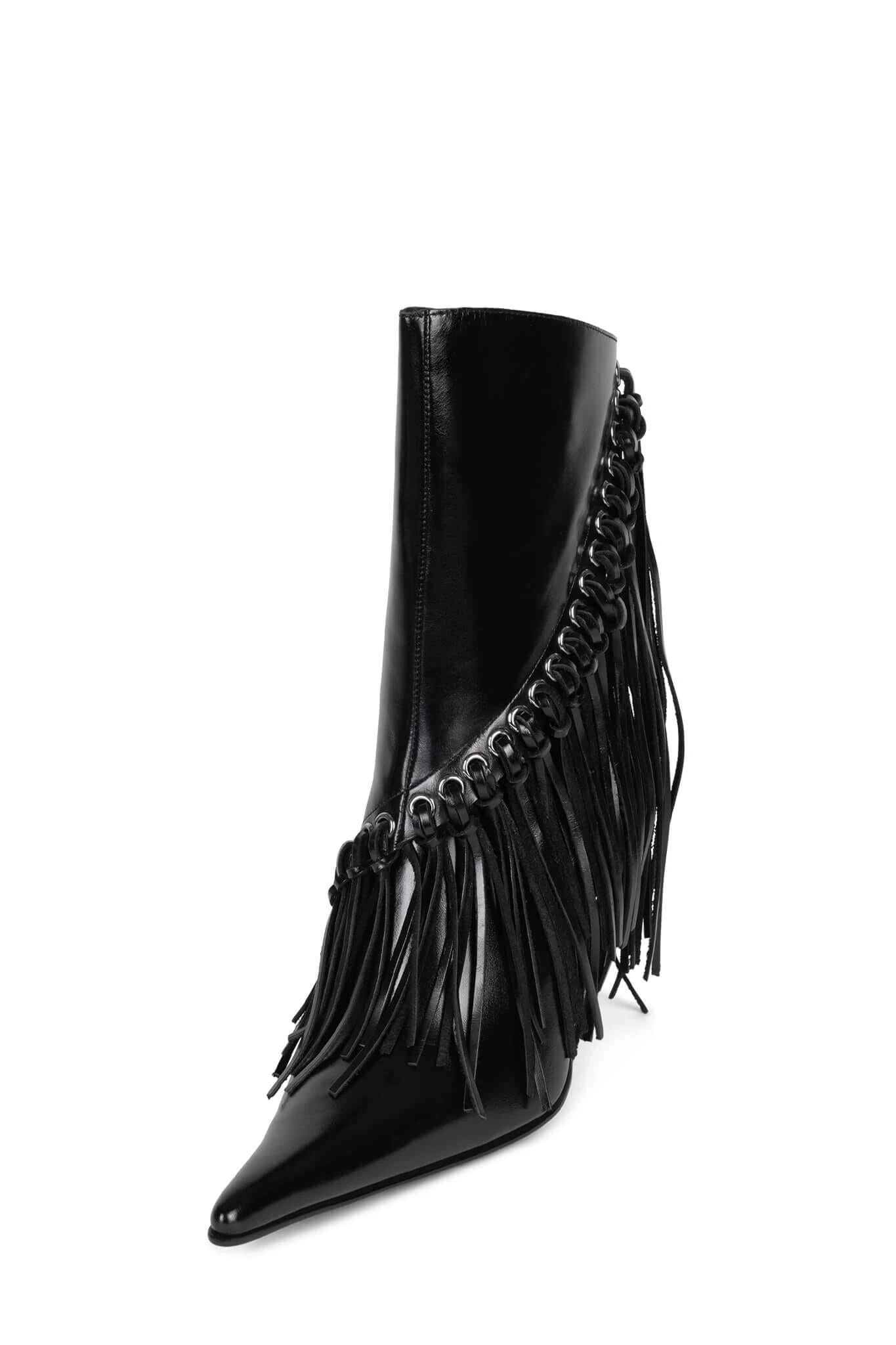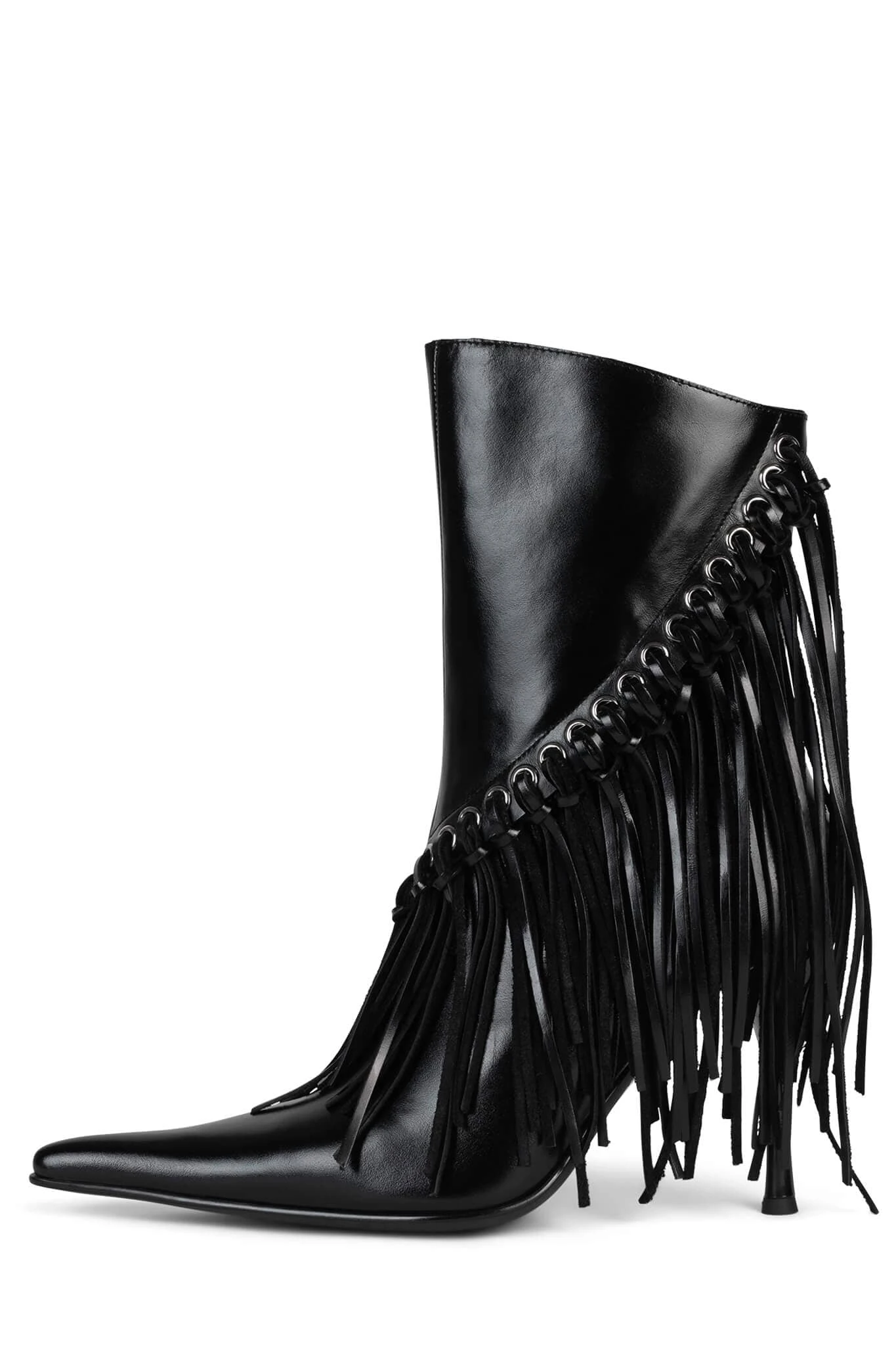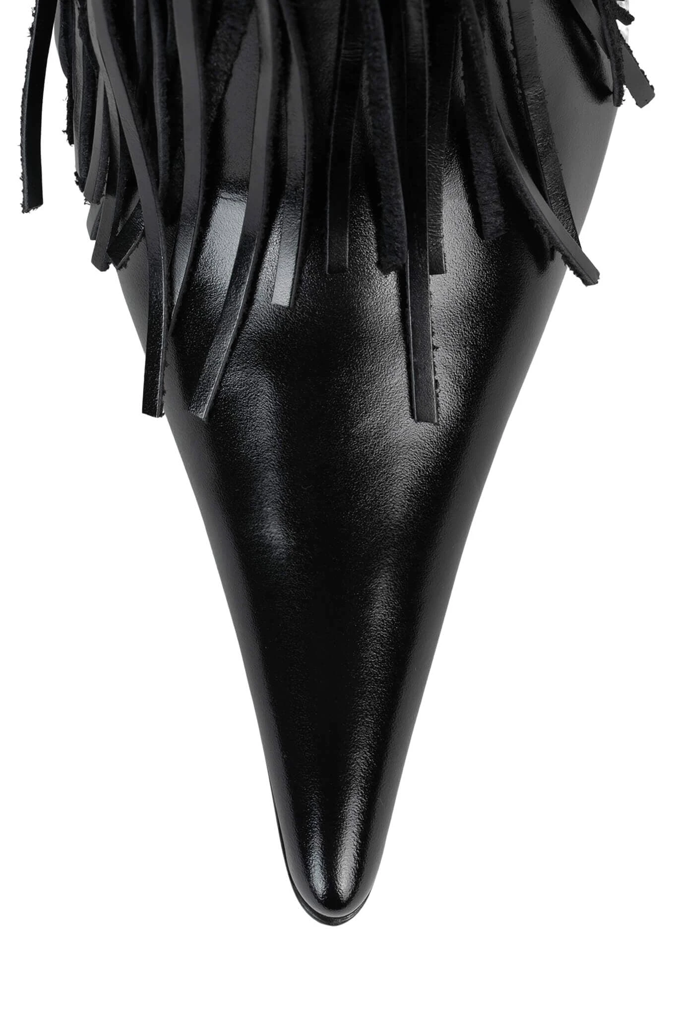 Pointed-toe wester-inspired stiletto boot with fringe detail