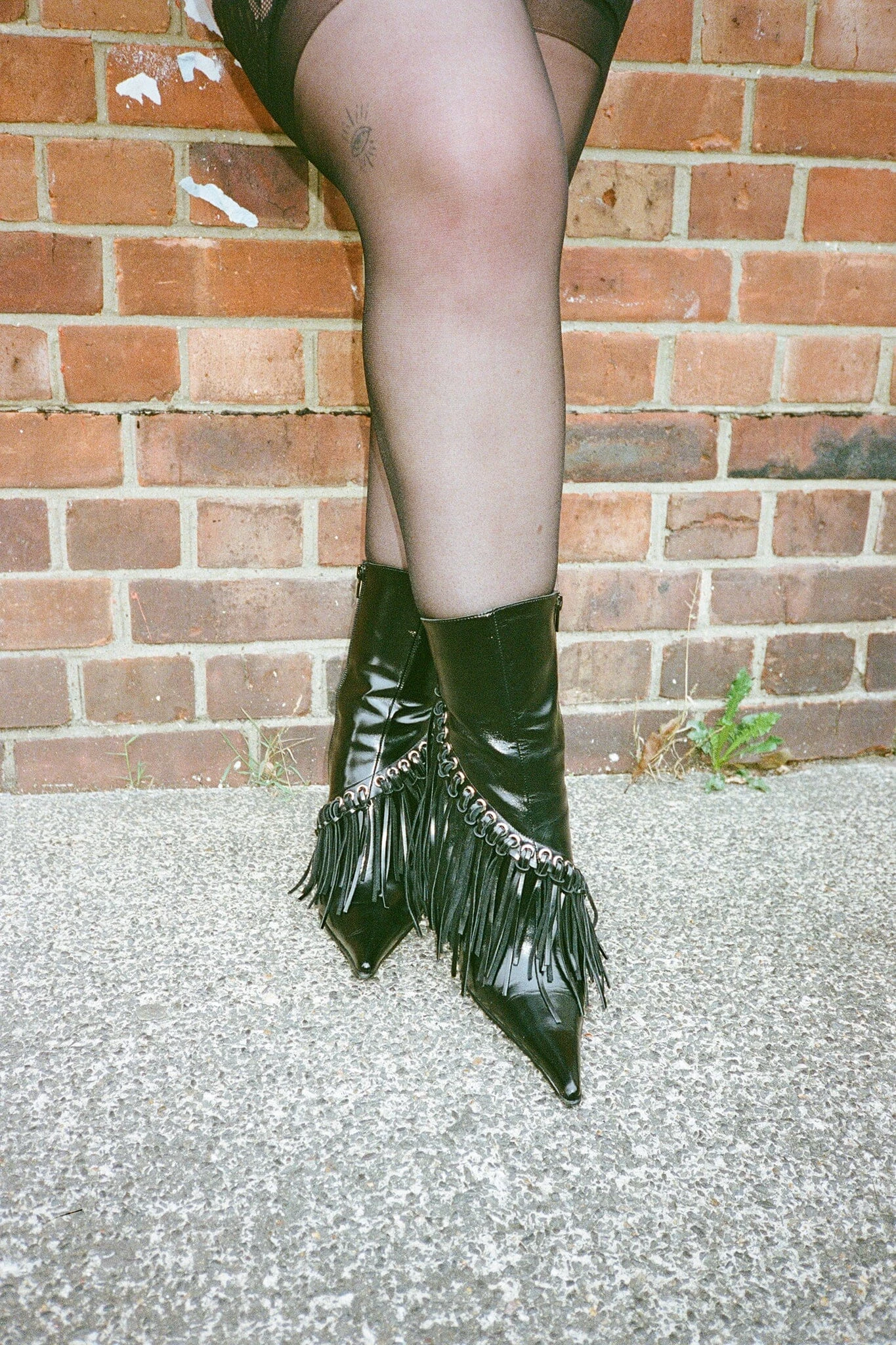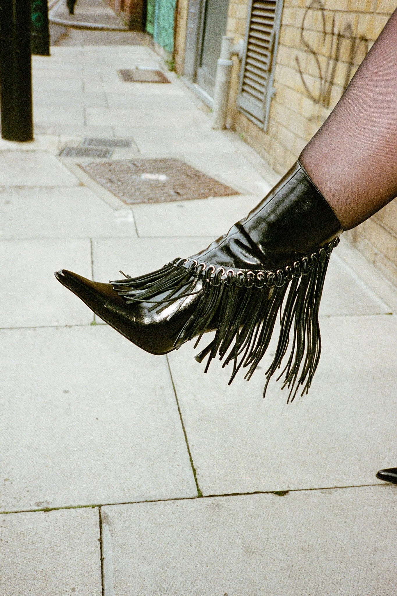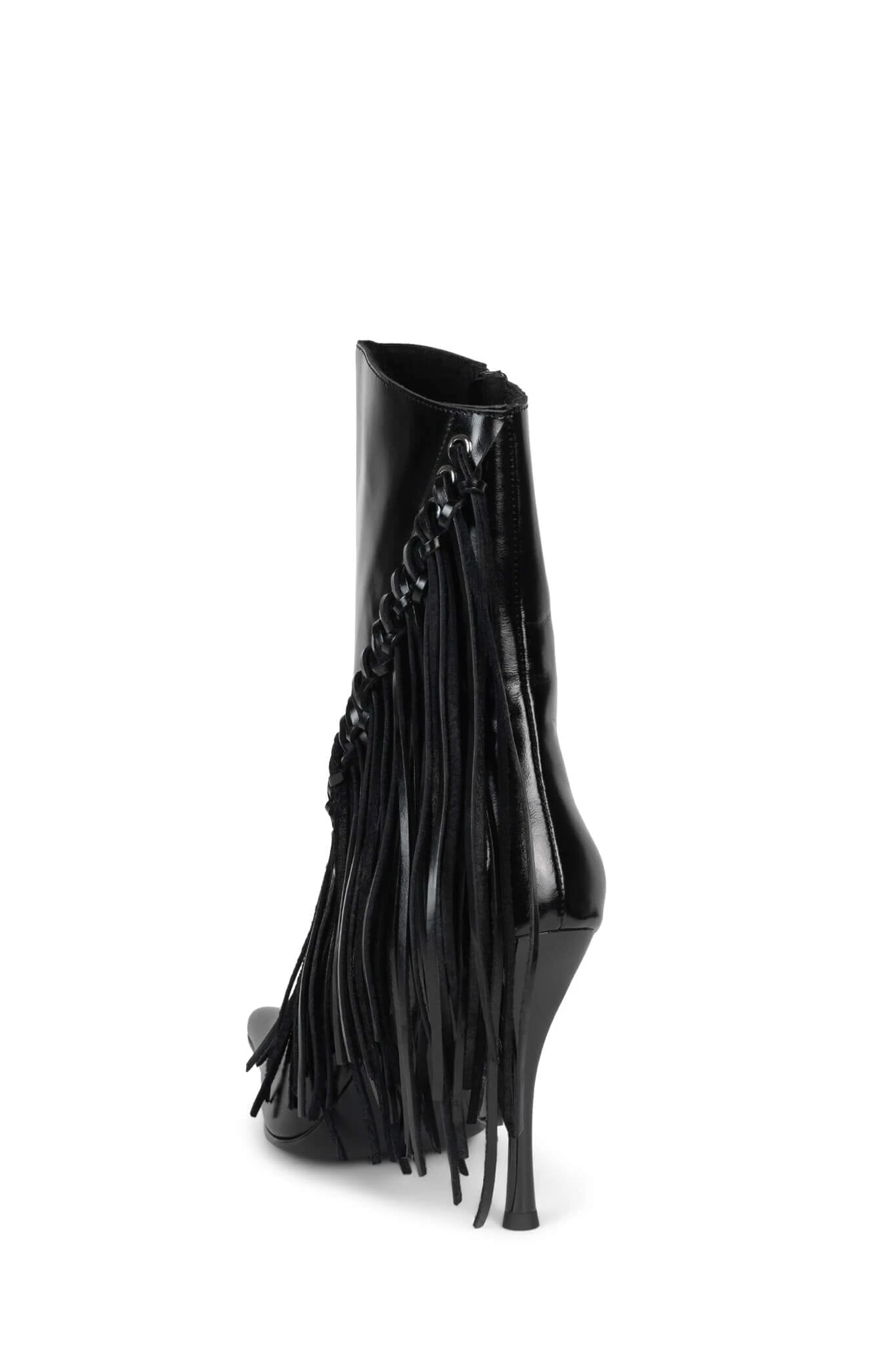 Pointed-toe wester-inspired stiletto boot with fringe detail