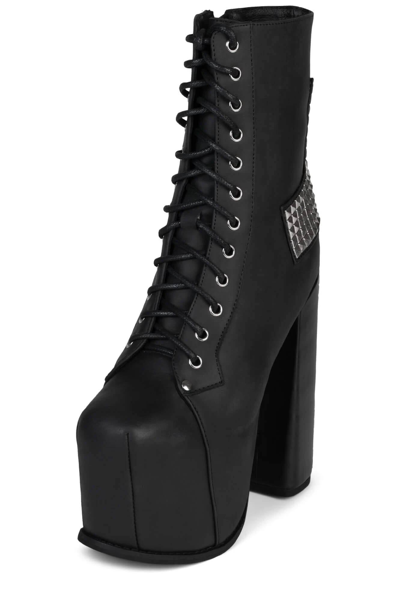 Lace-up platform boot with studded cross-detail