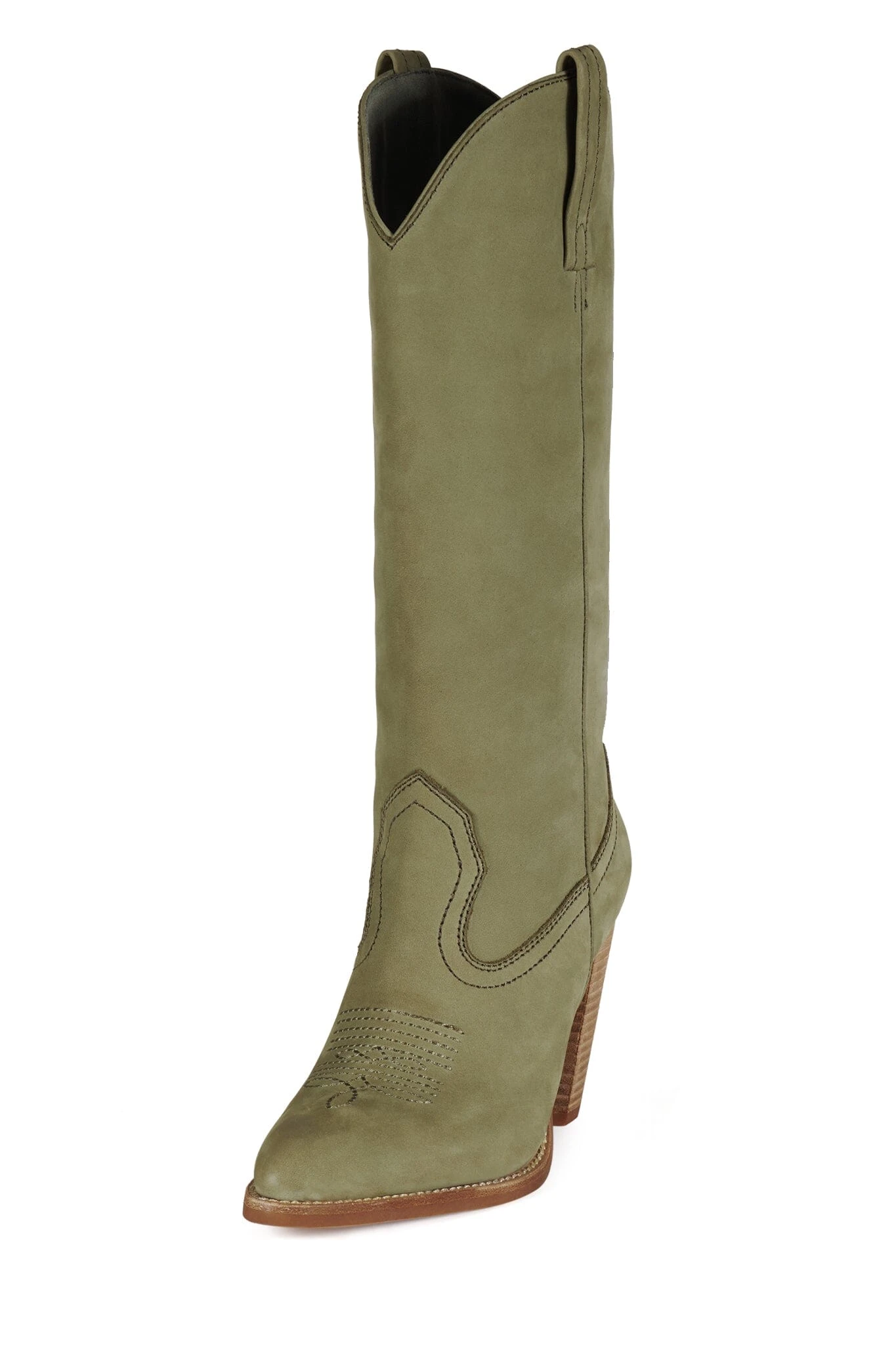 Knee-high western boot with stacked heel