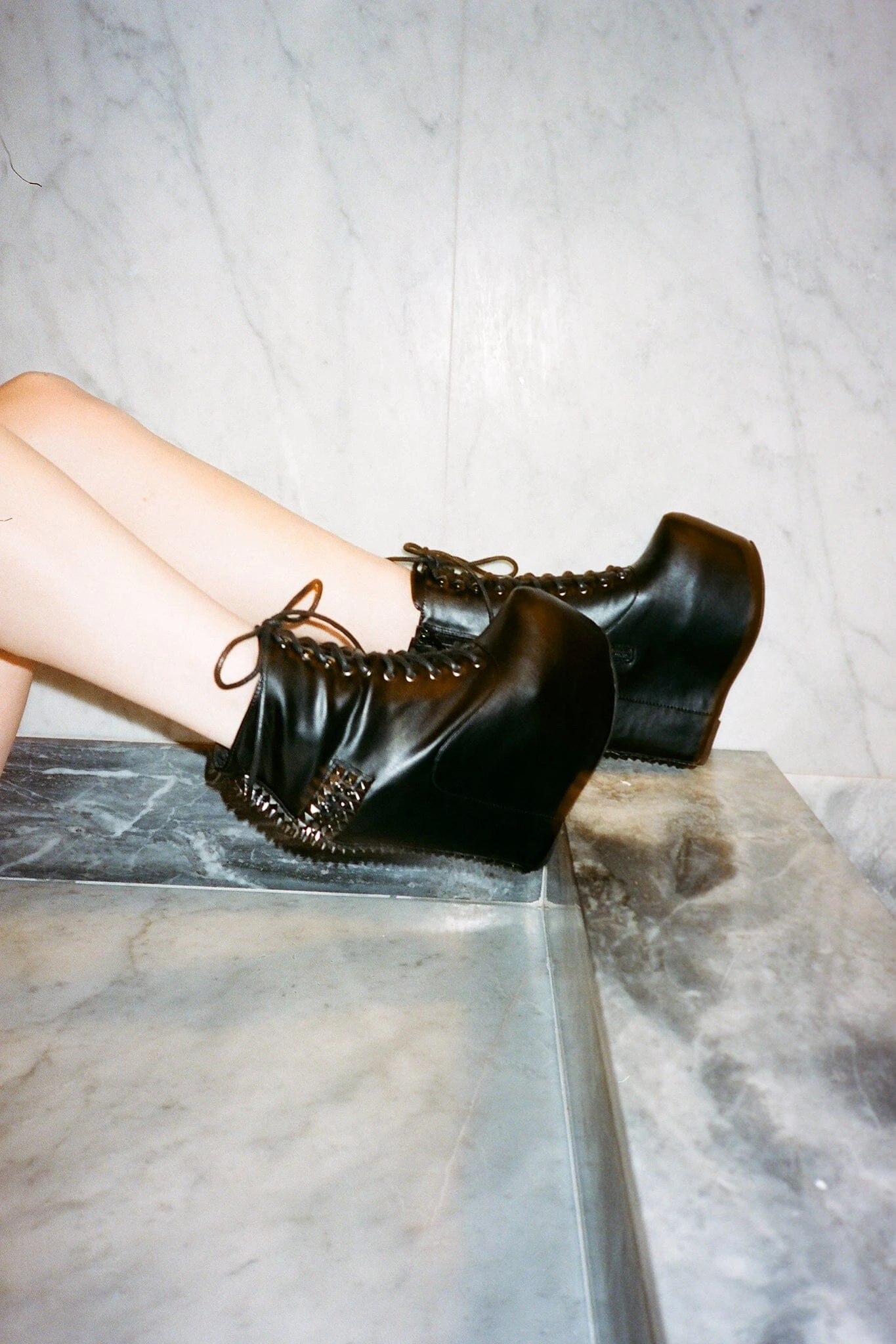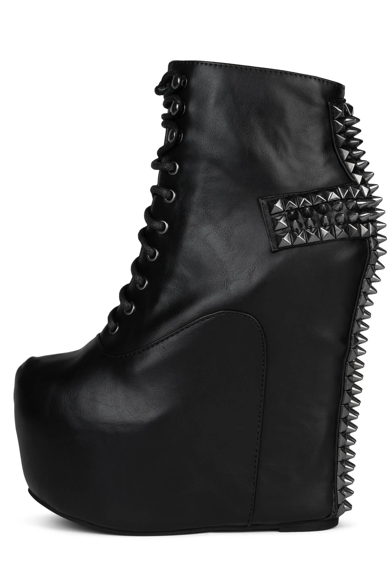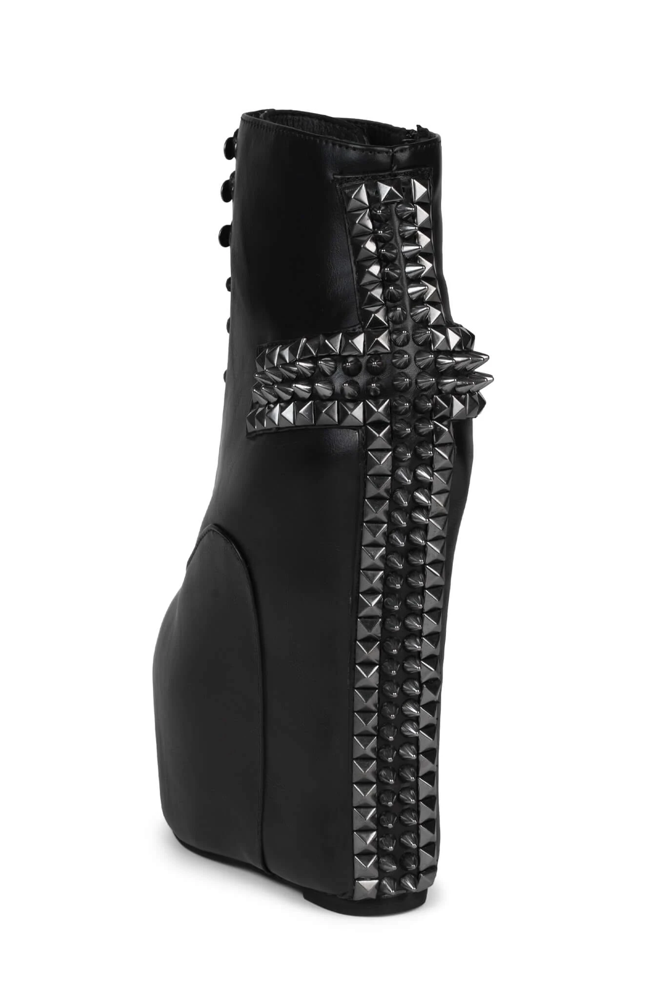 Lace-up platform wedge boot with spiked cross detail