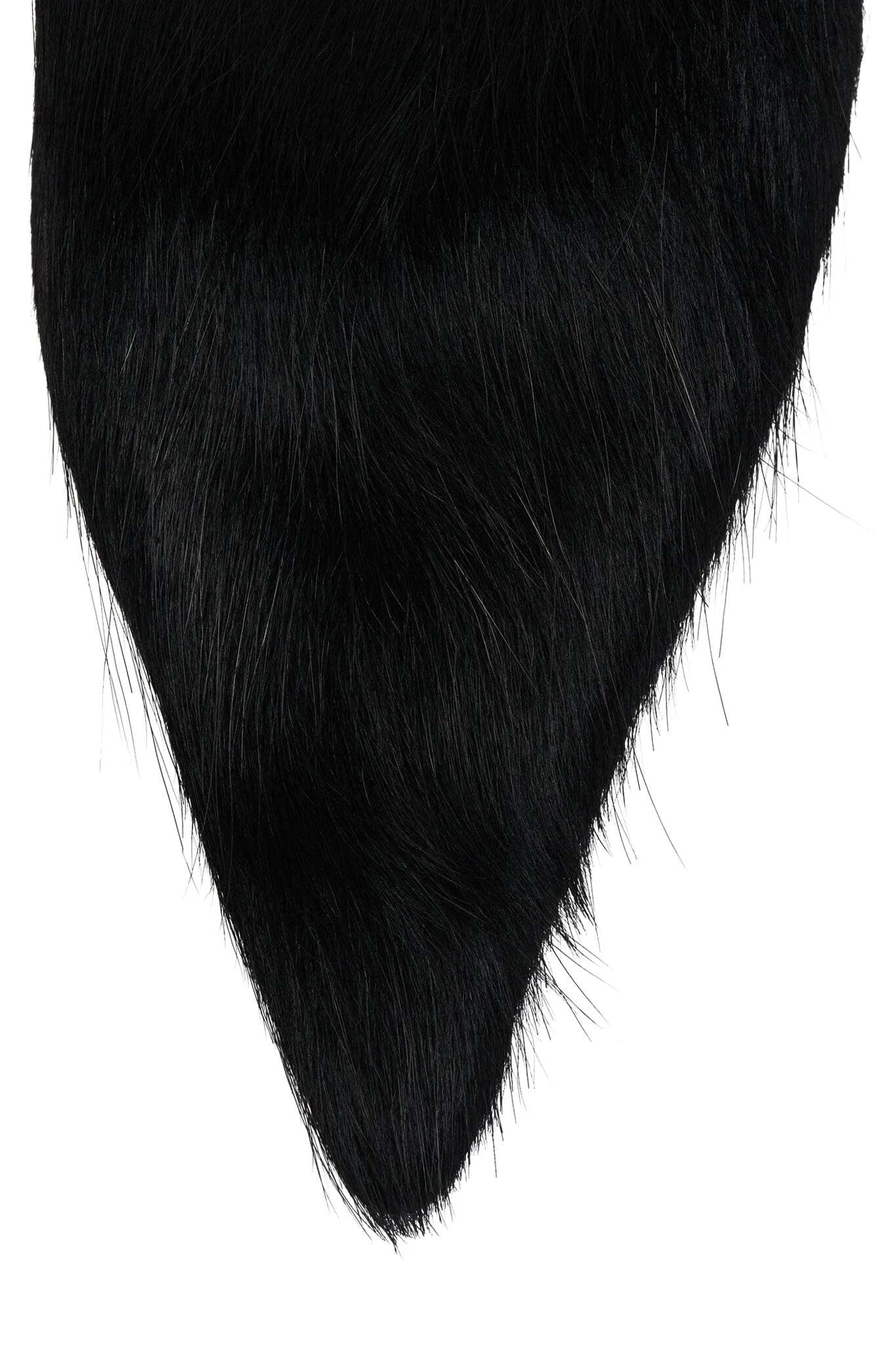 Calf-hair ankle stiletto bootie with elongated pointed toe.