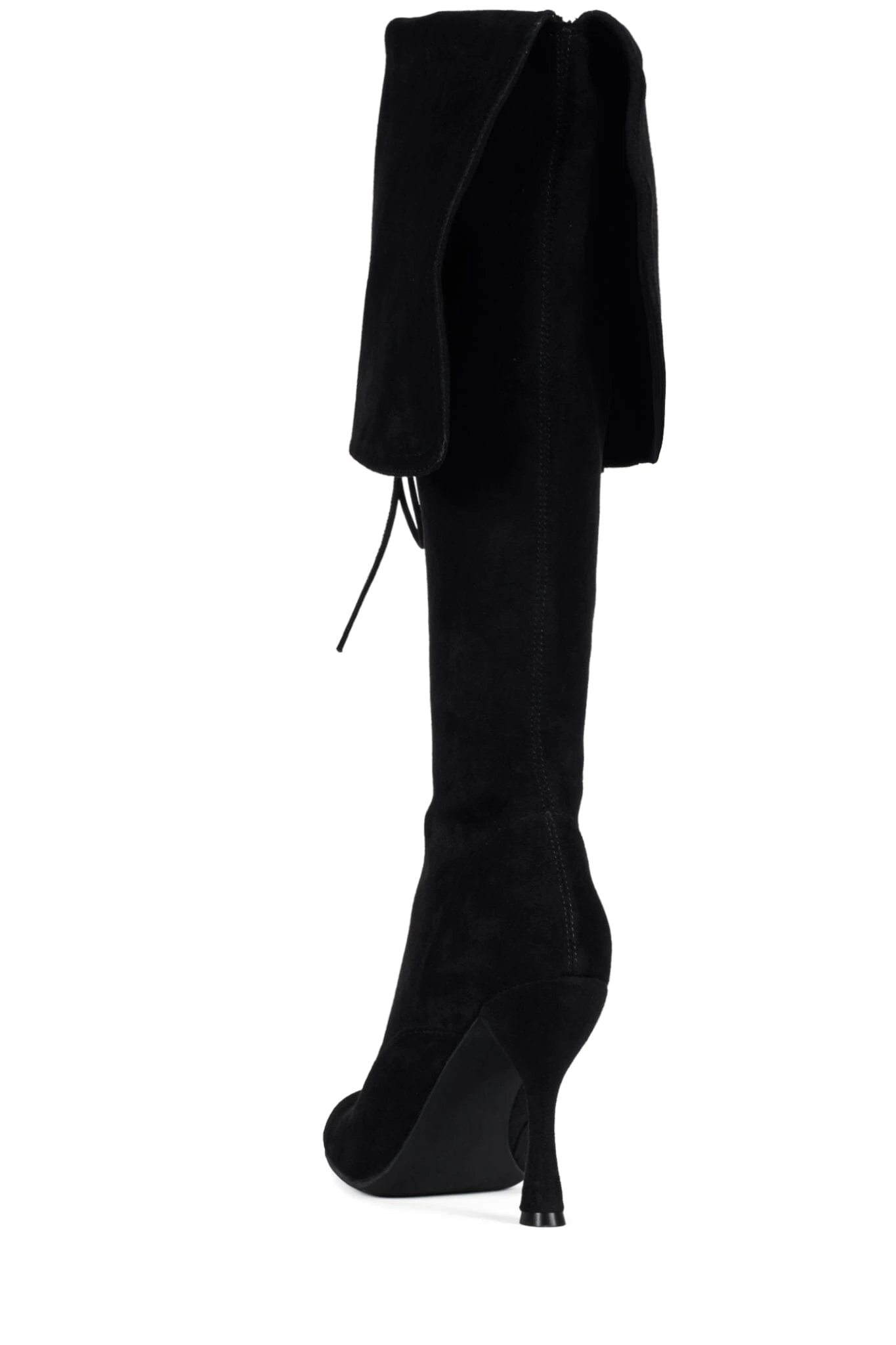 Lace-up knee-high fold-over heeled boot, can be worn over-the-knee