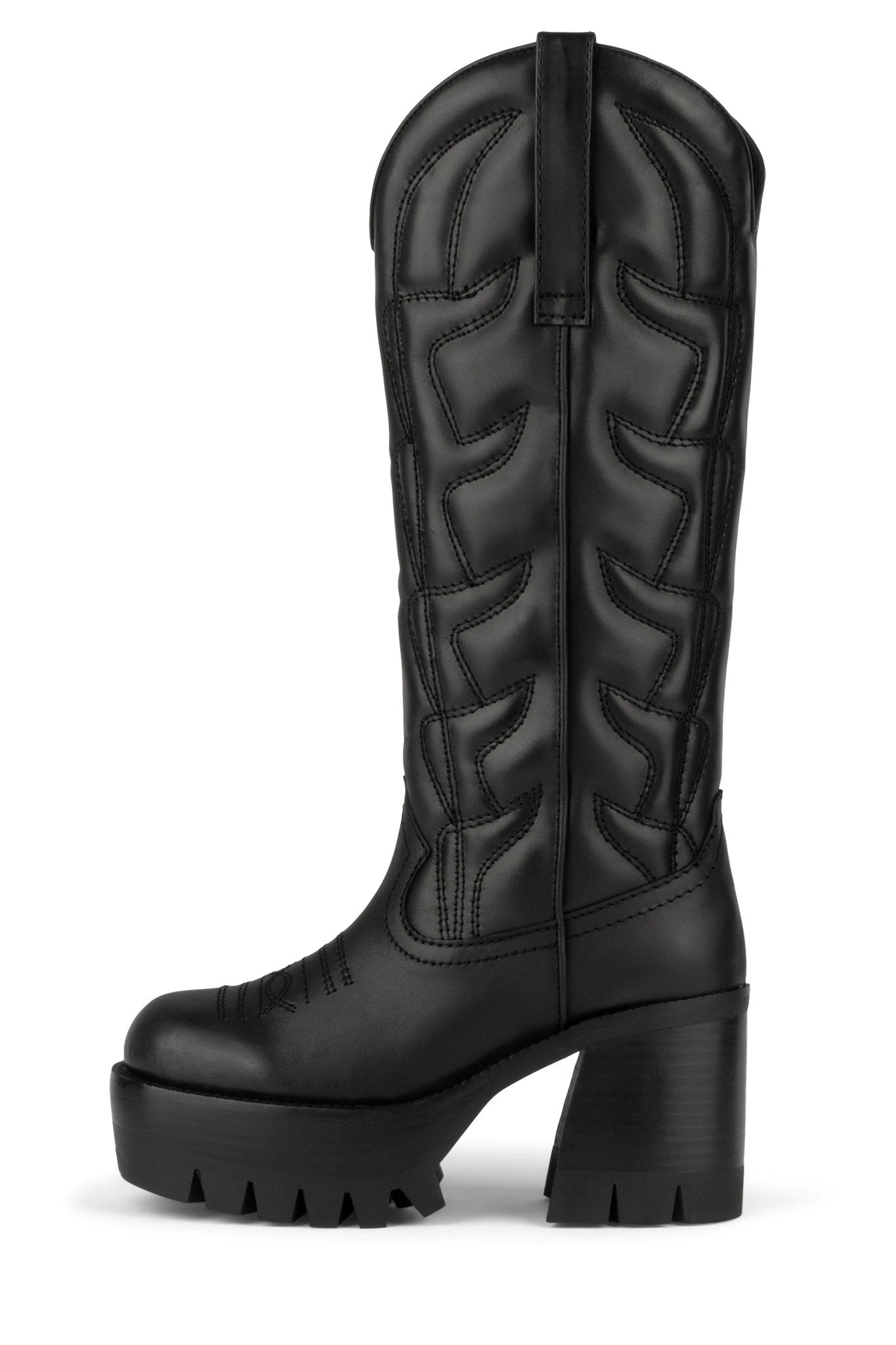 Platform knee-high cowboy boot with lug sole