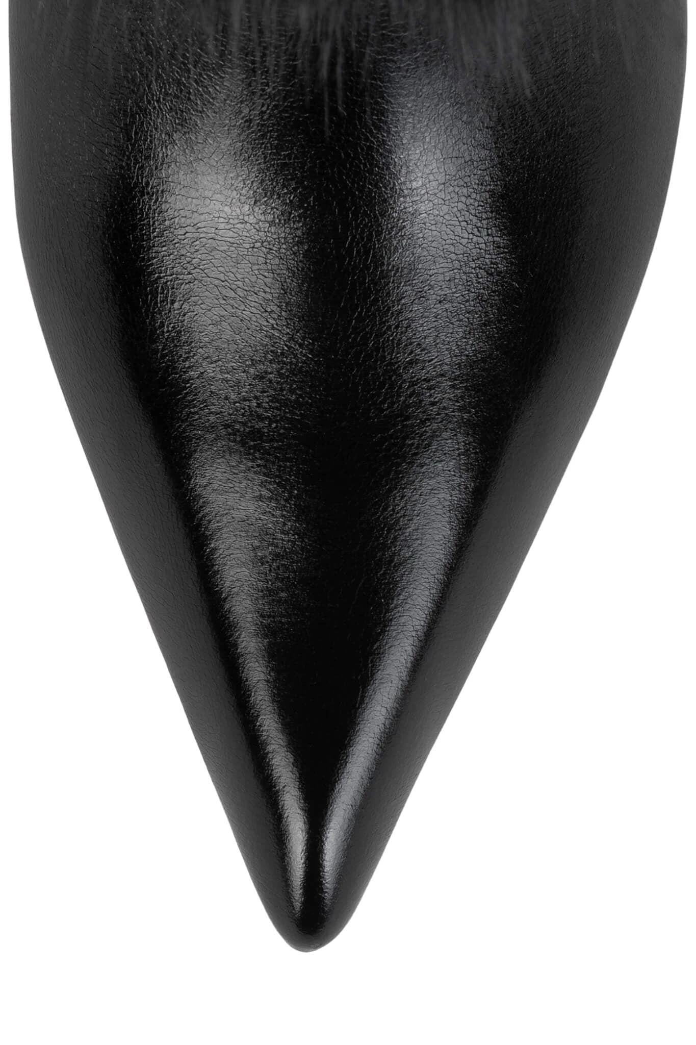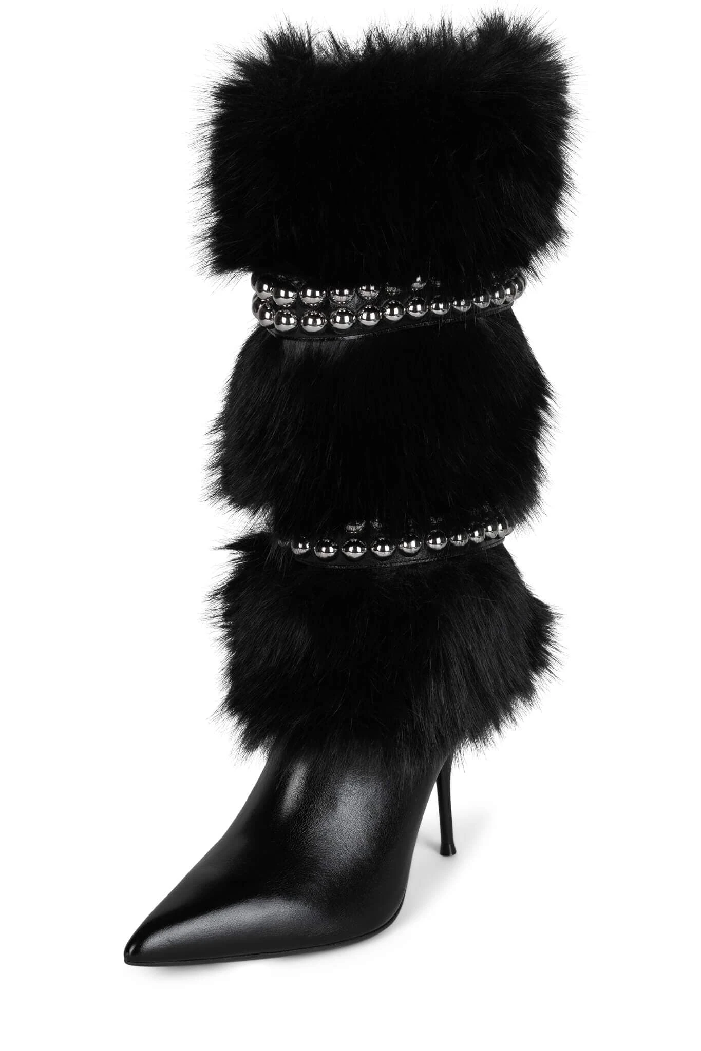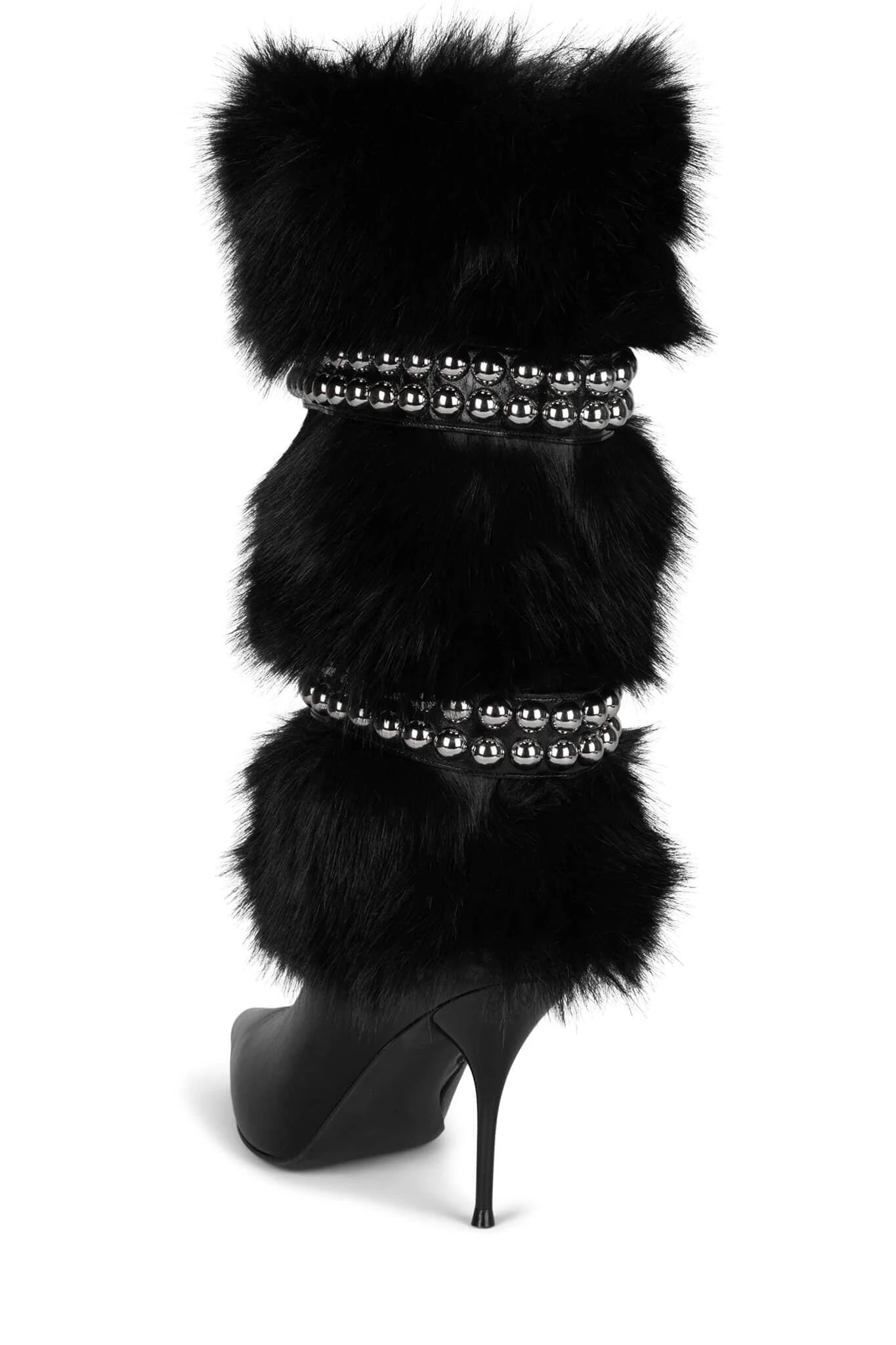 Knee-high faux-fur stiletto boot with metal stud detail