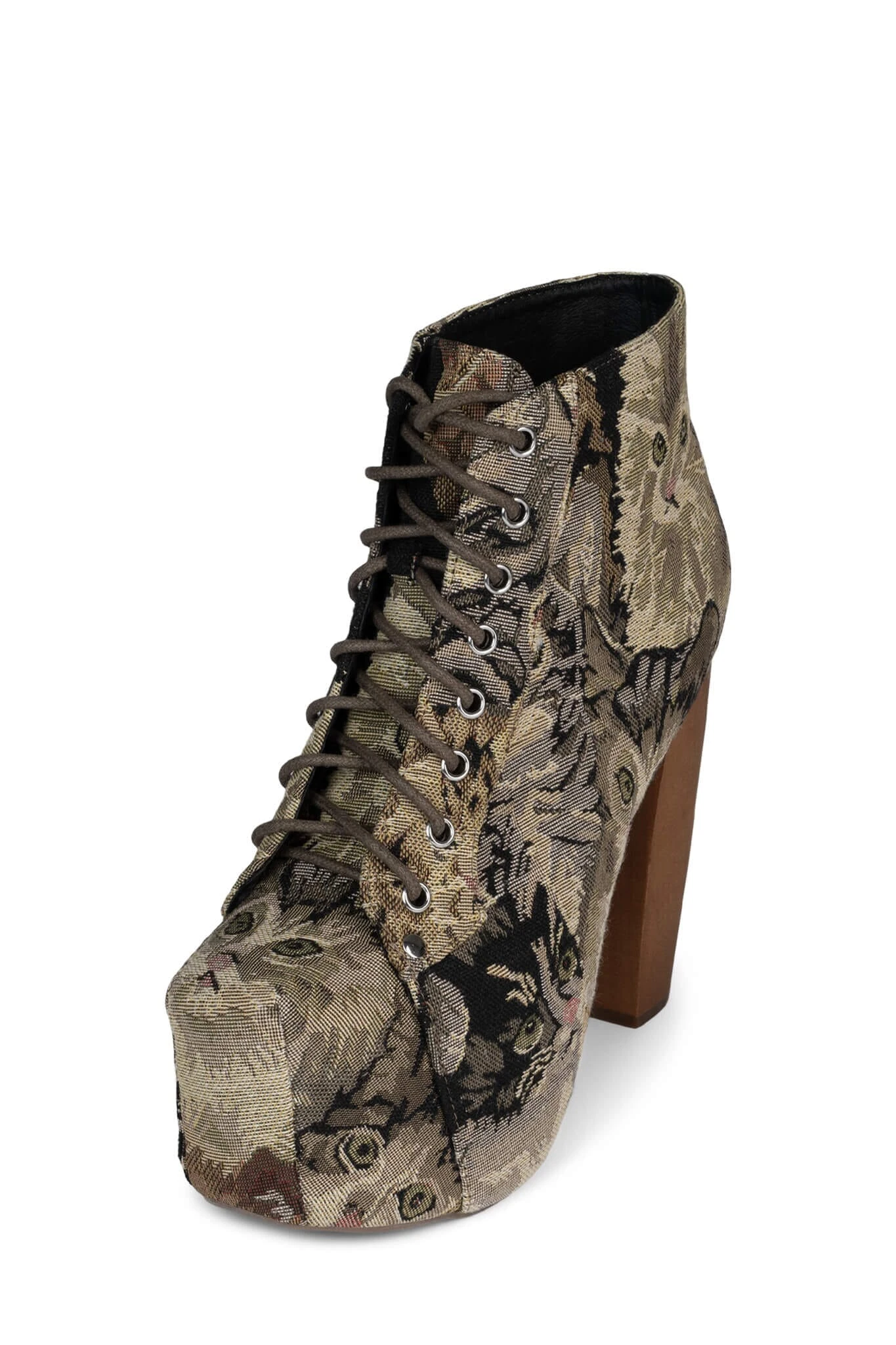 Platform heeled lace-up bootie.