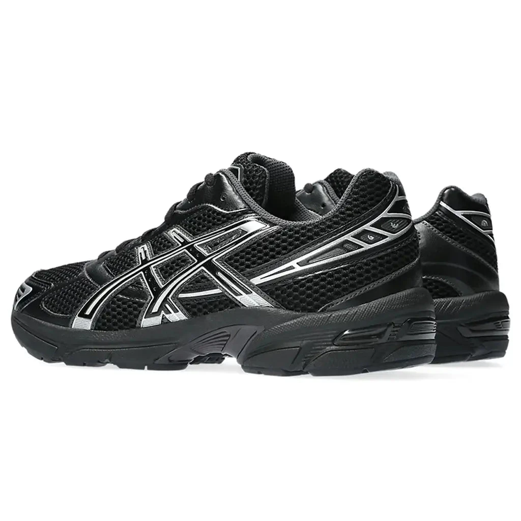 Description: This colourway boasts an all-black mesh construction with synthetic leather overlays to reinforce the lightweight upper. Shiny silver accents adorn the ASICS stripes on the sides, mudguard, and heel panel. The shoe has visible GEL technology in the heel for bouncy cushioning, while the TRUSSTIC support system on the midfoot provides stability and torsional support. The decoupled rubber outsole completes this GEL-1130 rendition.