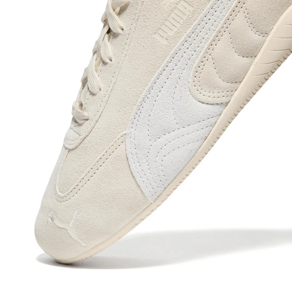 An icon of racing culture, the PUMA Speedcat has been synonymous with speed, precision, and unparalleled performance for over 25 years. It originated as a fireproof Formula 1® footwear style, but over the decades it found itself on a new circuit – transcending the tracks of Monaco for the streets of global fashion capitals. Wrapped in soft suede and premium leather, this silhouette is reissued in its original red and black colorways with a new PUMA Cat Logo at the front.