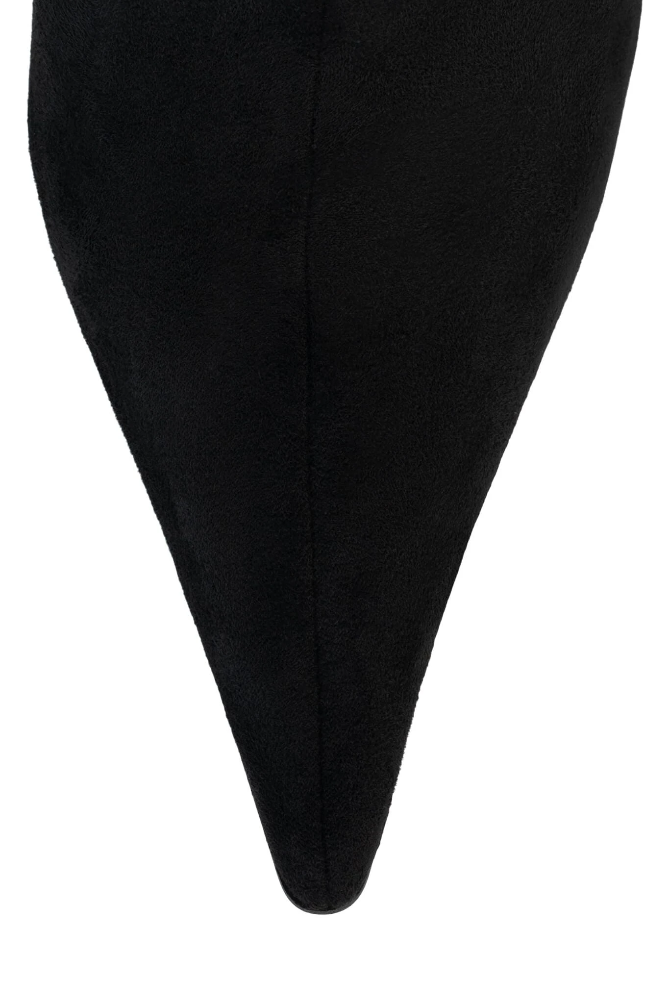 Pointed-toe knee-high stiletto boot with contrasting stripe detail