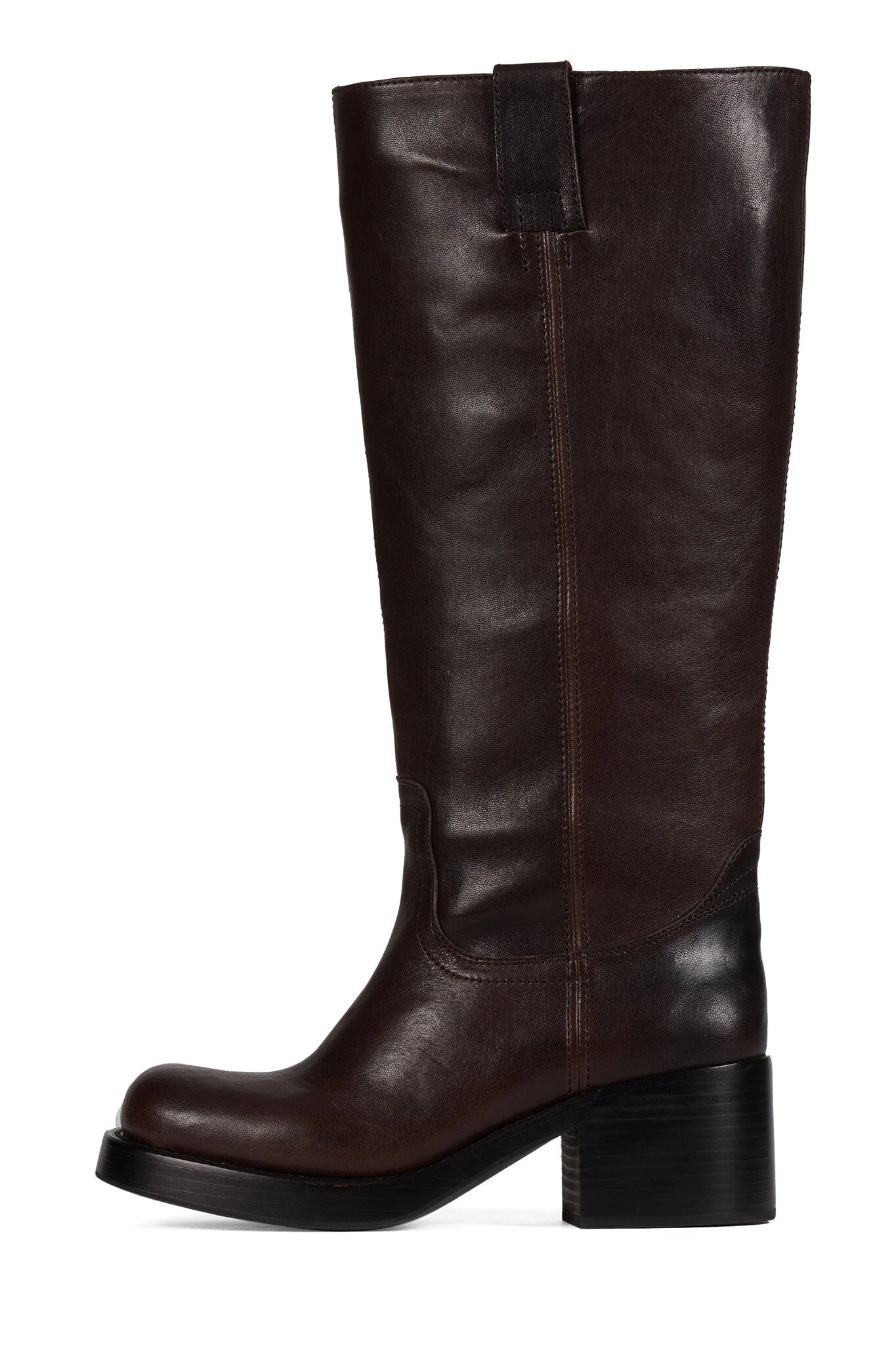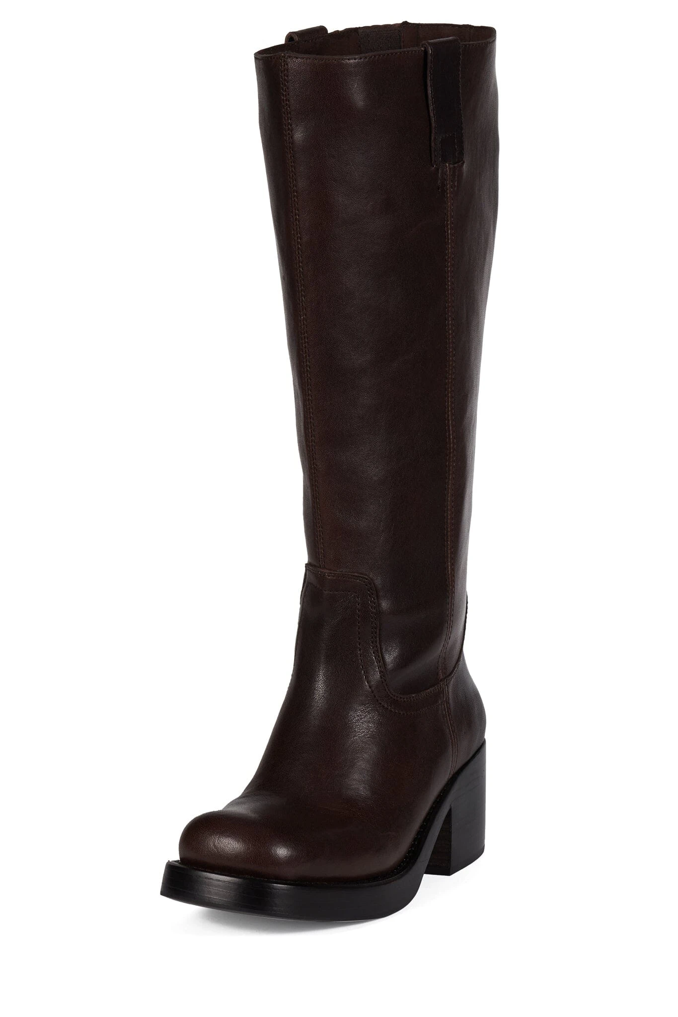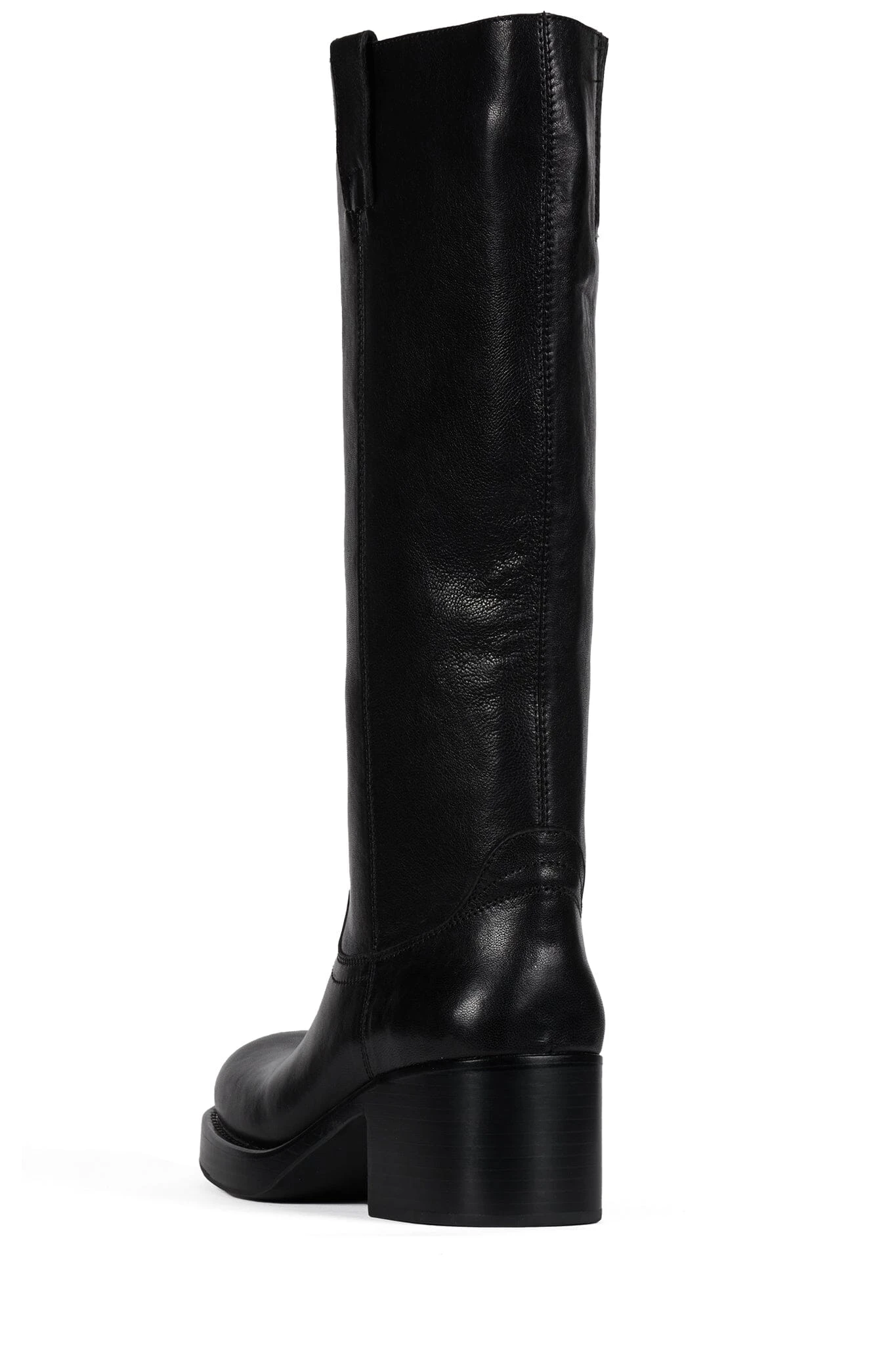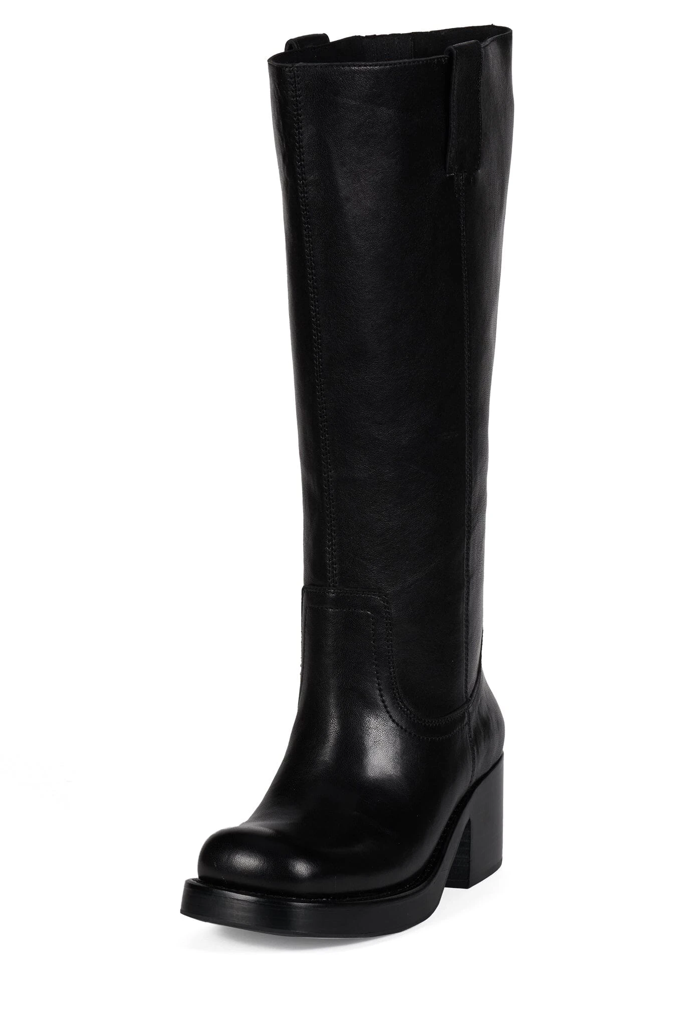 Wide-shaft knee-high stacked-heeled boot