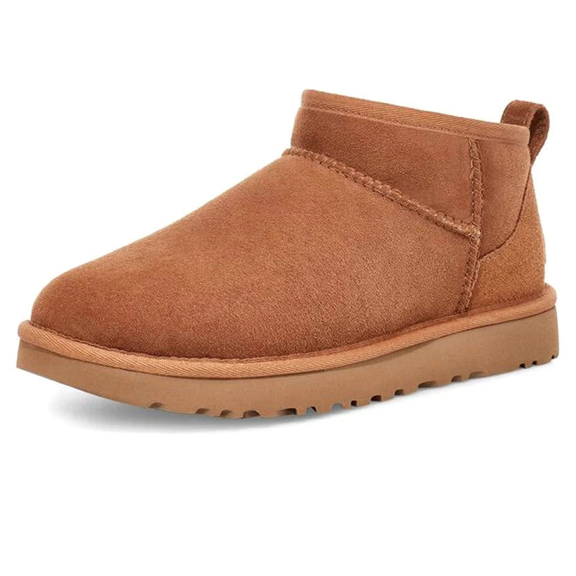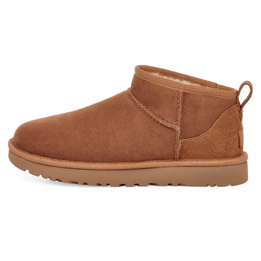 Description: UGG’s range of footwear options share two important things in common: comfort and materials. Its iconic Classic Boot model from the ’70s remain widely loved today and has inspired modern-day designs like the UGG Classic Ultra Mini ‘Chestnut’.