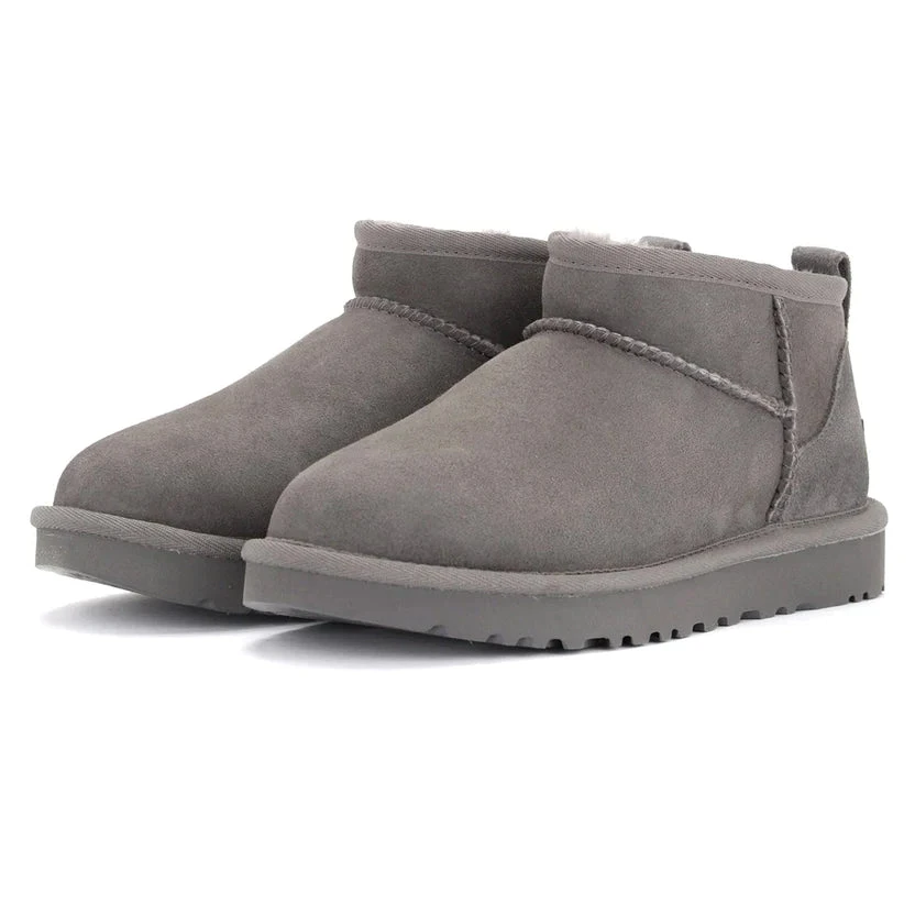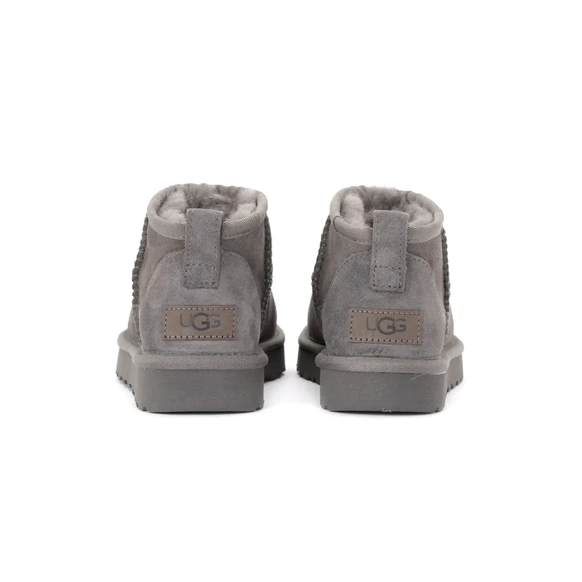Description: This Ultra Mini Boot has a twinface sheepskin upper in grey-toned brown Goat that’s been pretreated to keep it in tip-top shape for longer. This slip-on boot comes equipped with super-soft UGGPlush lining that promise to keep your feet warm and toasty all throughout the colder months. The upper has an asymmetrical topline, overlock stitch detailing on the moccasin-like seams, a rear pull tab, a suede heel counter and a leather heel tab with an embossed UGG logo. An uber-flexible and lightweight grey SugarSole and a comfy Treadlite outsole wrap up the design of this boot.