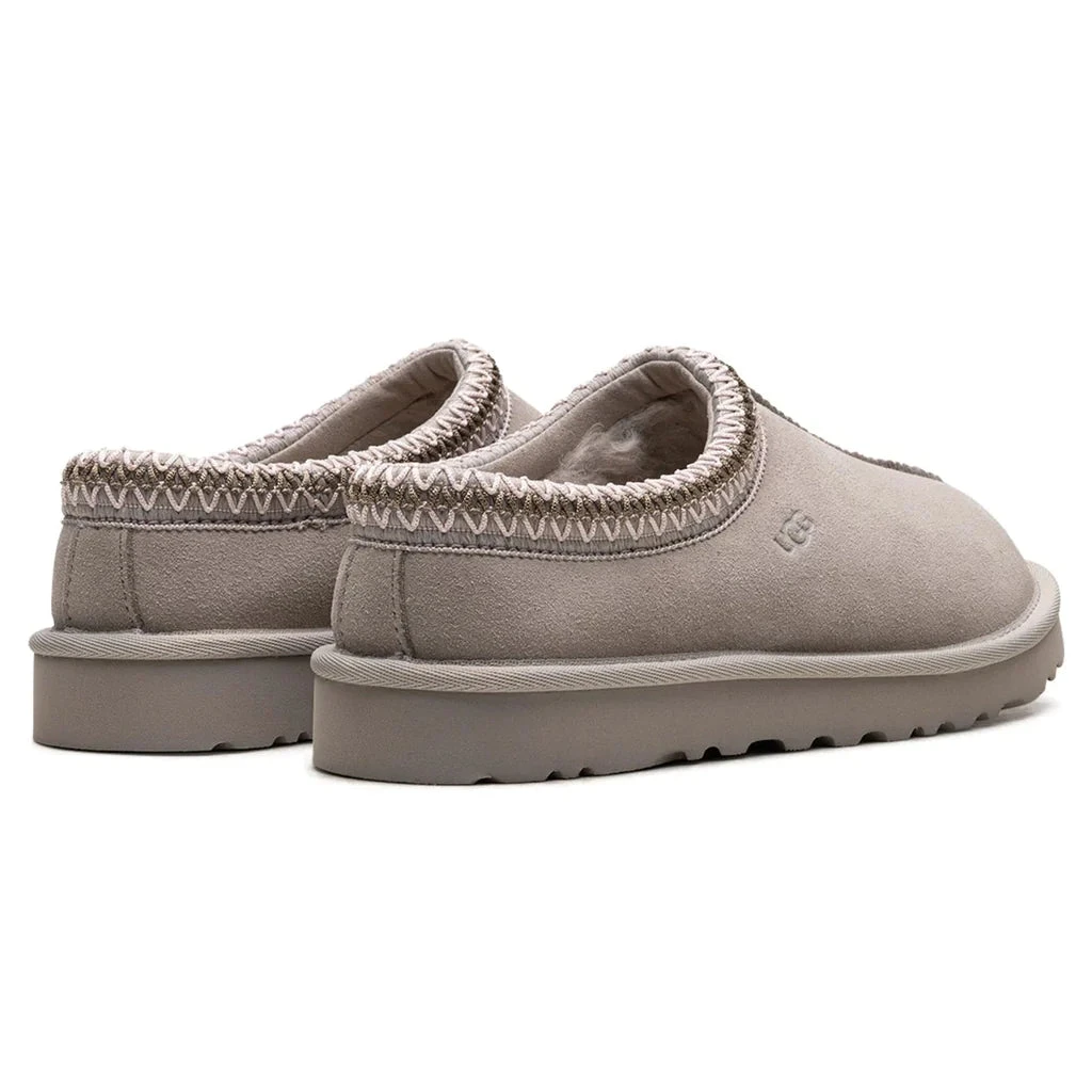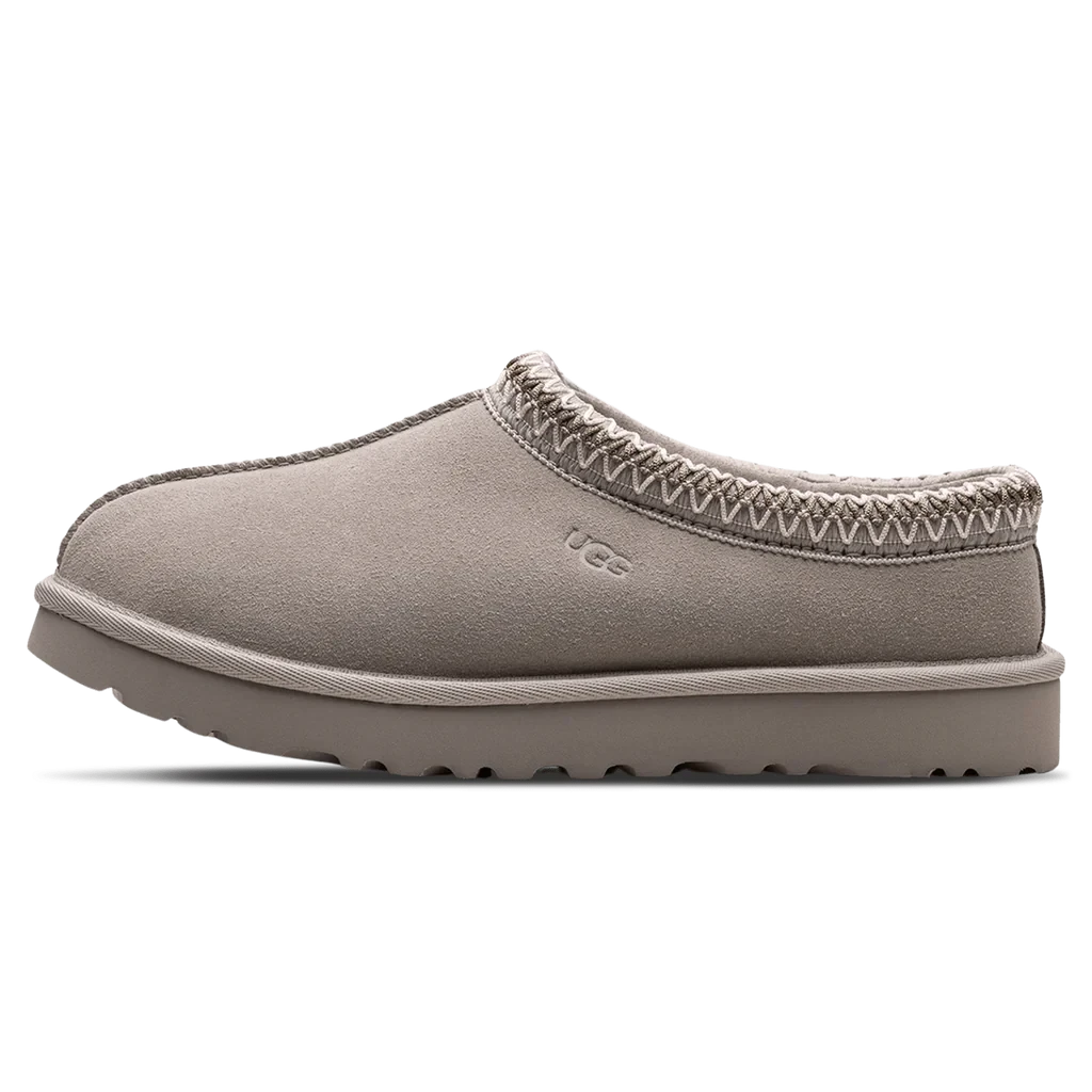 Description: The Tasman slipper showcases a luxurious greyish-brown Goat suede upper with a distinctive moccasin-style centre seam. Lined with plush natural wool and featuring a matching UGGpure wool insole, this slip-on silhouette ensures comfort. The iconic Tasman braid embellishes the collar opening, adding a touch of sophistication. Equipped with the light and durable Treadlite sole, also found on the UGG Classic Boot, these slippers are easy to put on and take off. The style is completed with an embossed UGG logo on the lateral collar, making these kicks both stylish and practical.