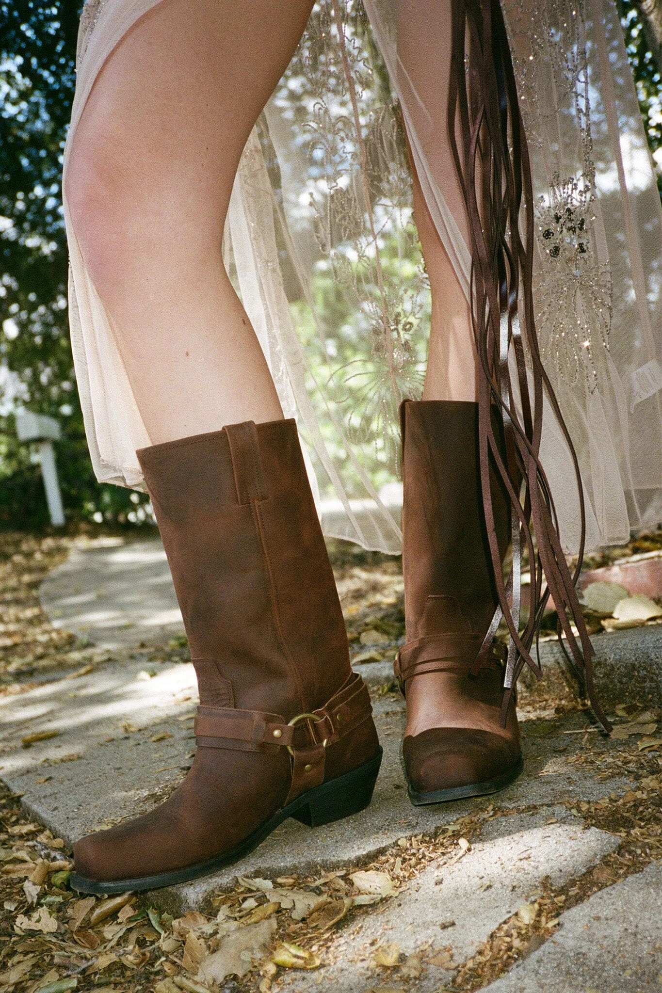 Square-toe western knee-high boot
